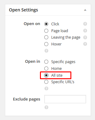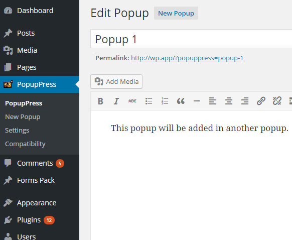 The plugin configuration page is located in the drop-down menu of PopupPress