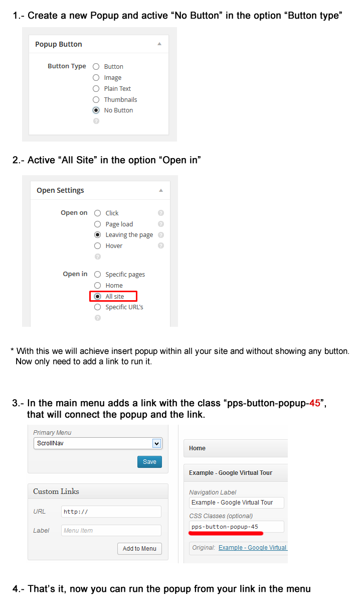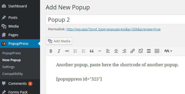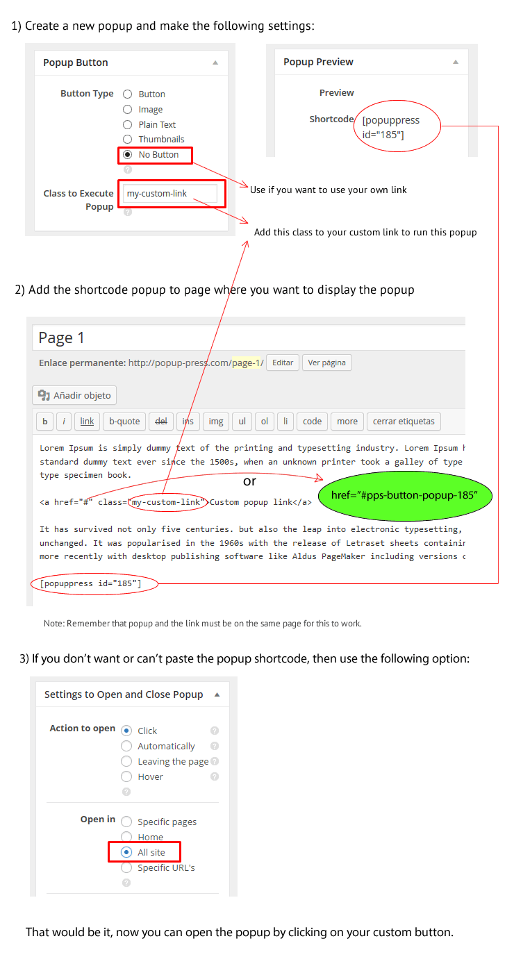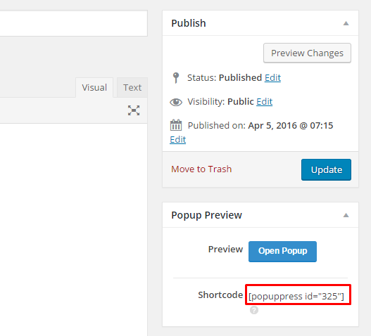 1) Create a popup, and copy the shortcode to add on the other popup that we will create in step 2.
