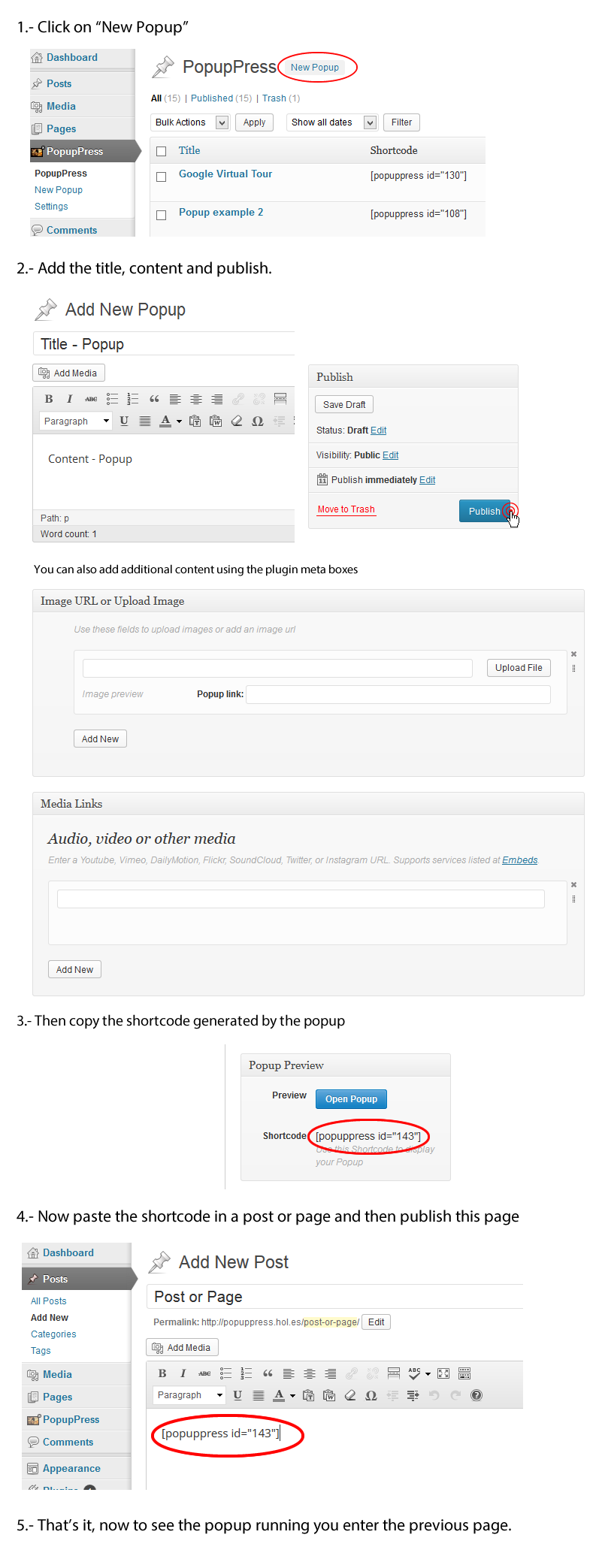PopopPress lets show HTML Text, Images, Audio, Video, Pictures and Video Galleries, and many more media.